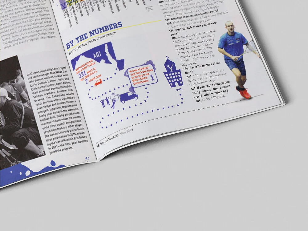 While working at U.S. Squash, I was greatly involved in creating tutorials for the company's tournament app, developing a photo archive of over 22,000 images spanning over 70yrs, and developing a illustration library for faster design production.